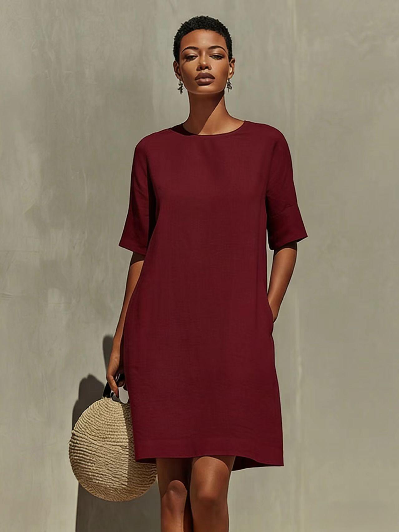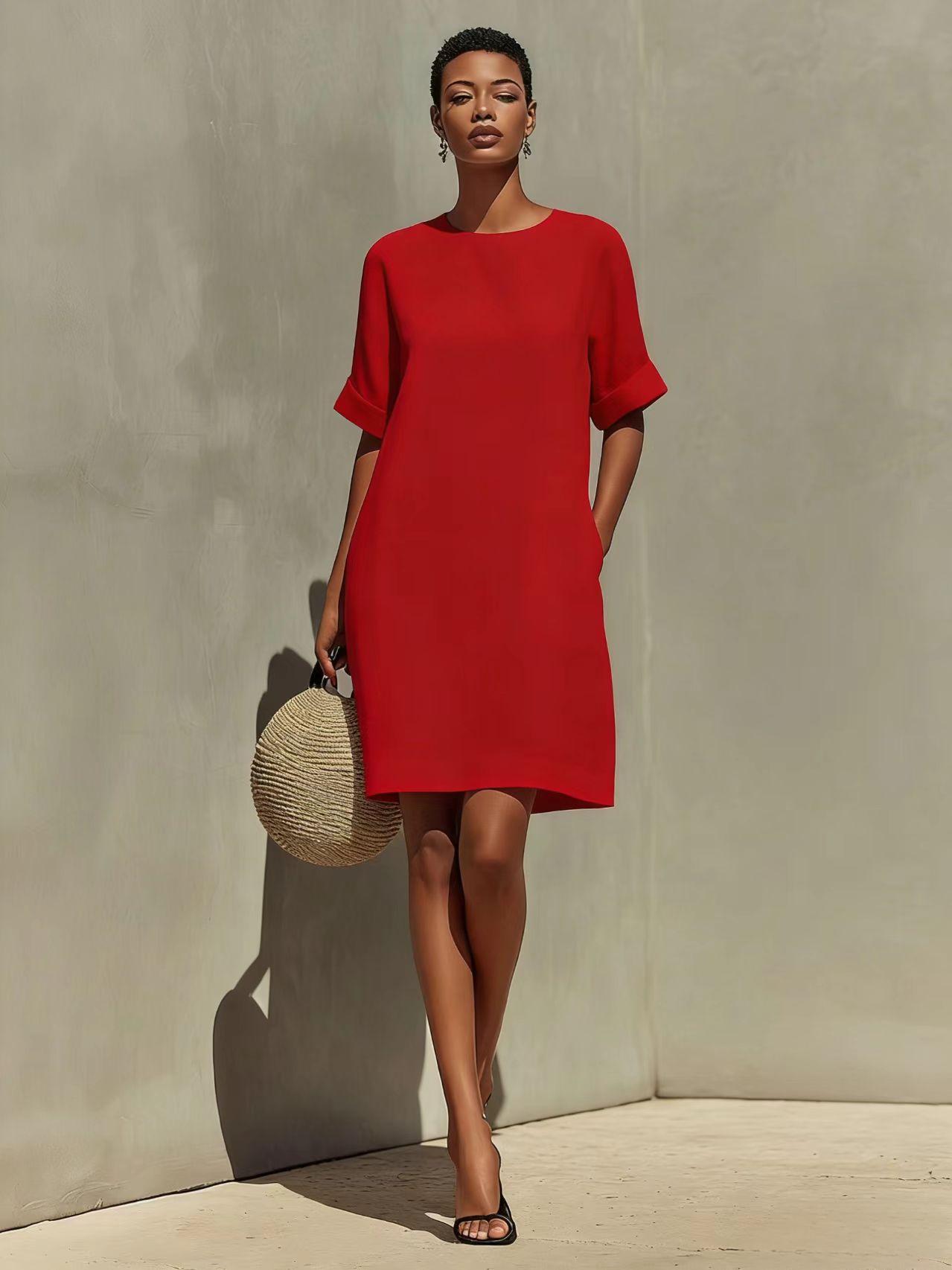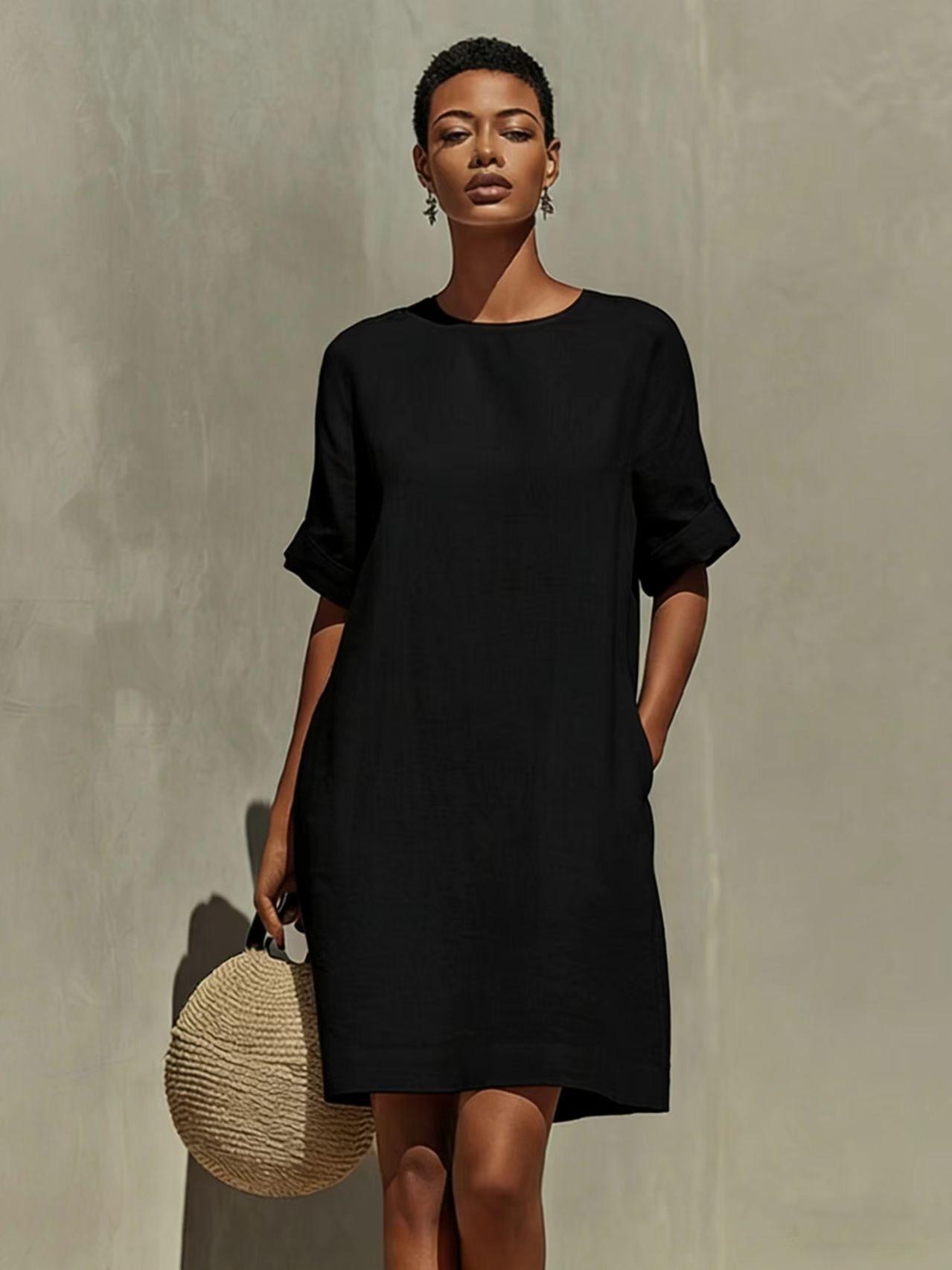 Round-neck Dress With Rolled-up Cuffs