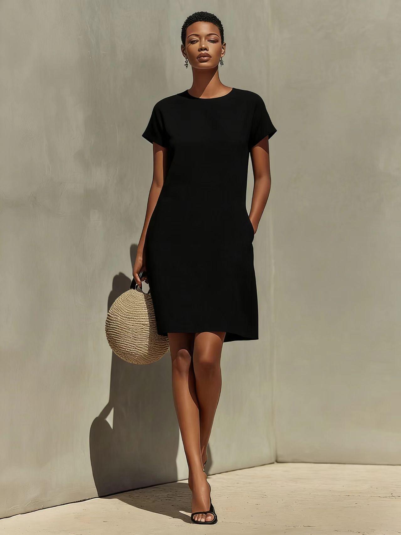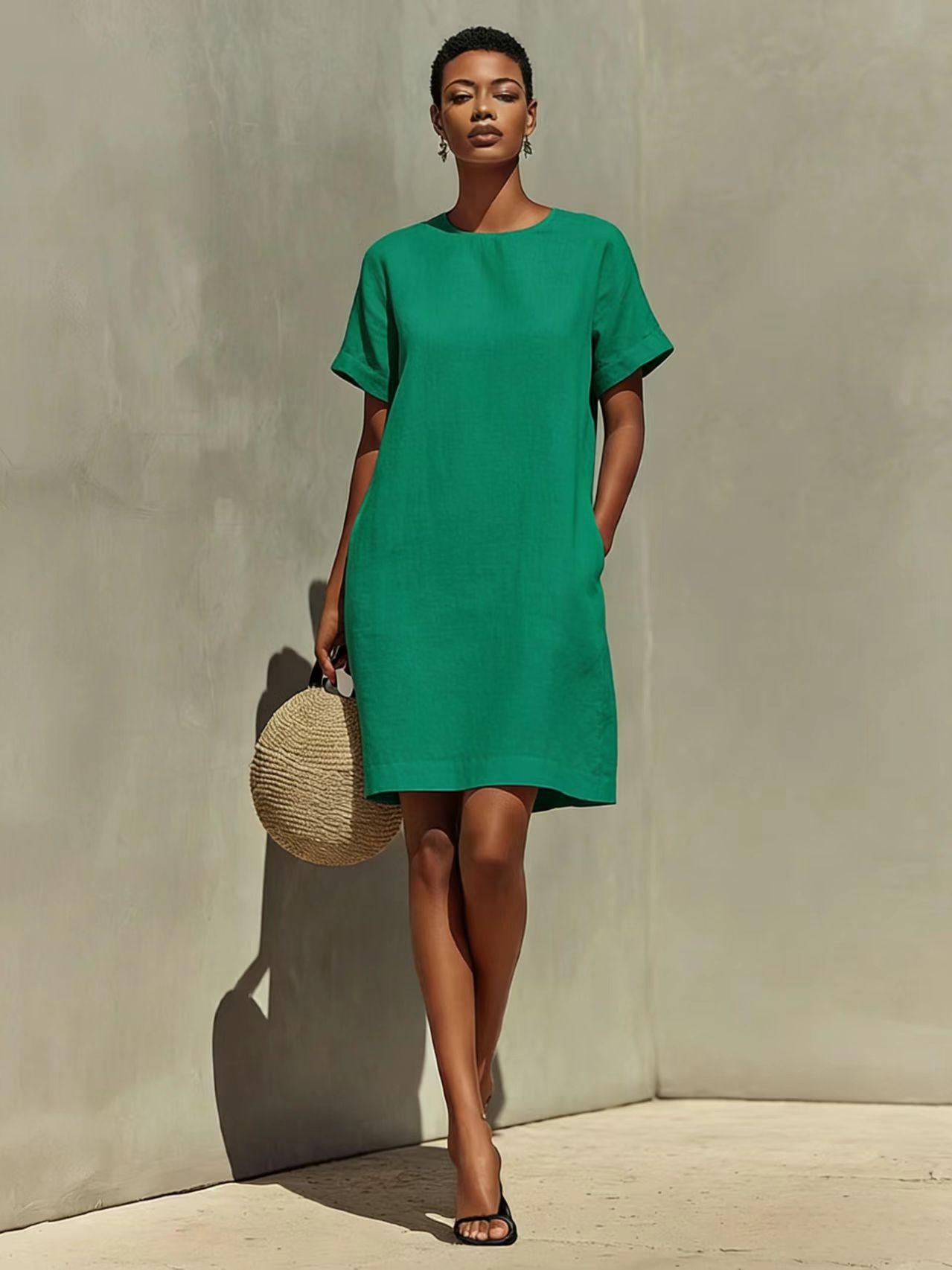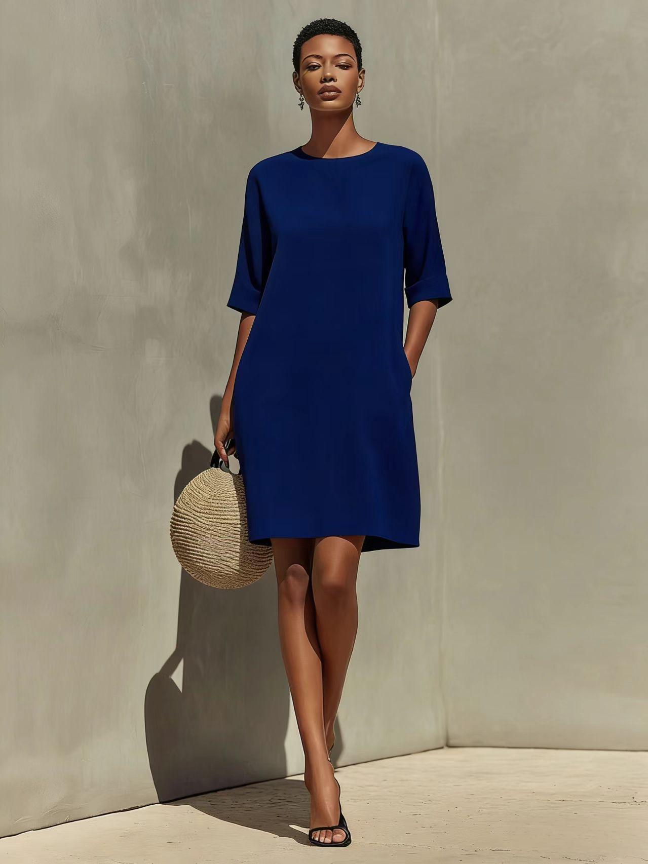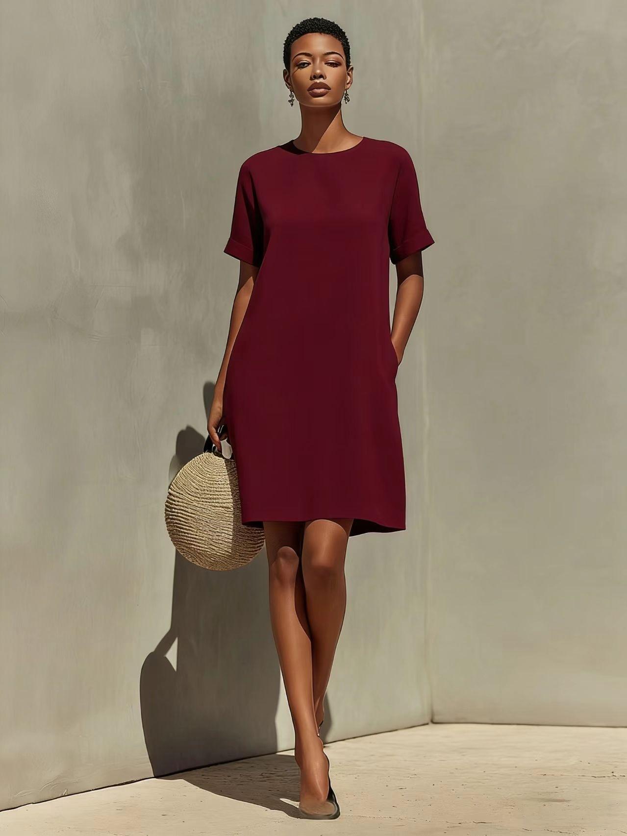 Round-neck Dress With Rolled-up Cuffs